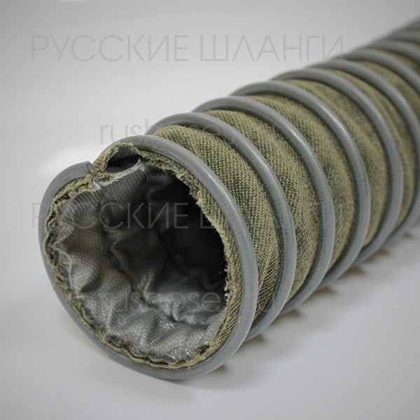 Специальный двуслойный высокотемпературный шланг с термостойкостью до + 300°C. Применяется для дымоудаления (особенно дымов от дизельных двигателей), удаления выхлопных газов.