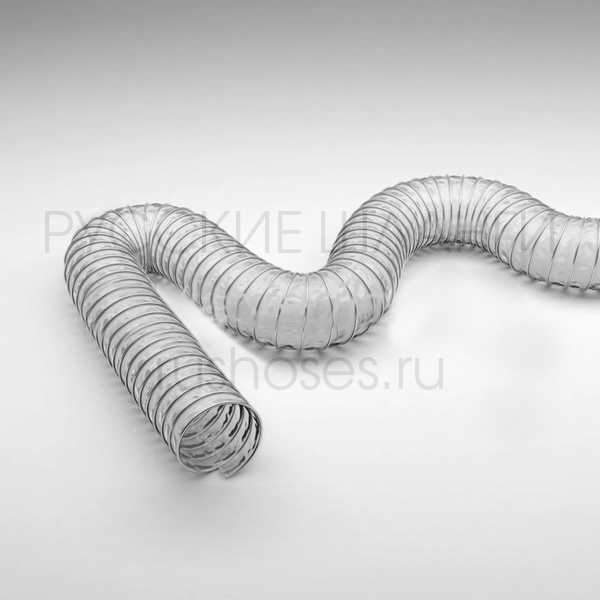 Абразивостойкий напорно-всасывающий шланг из полиуретановой пленки с внешней зажимной спиралью, которая защищает материал шланга от внешнего трения.